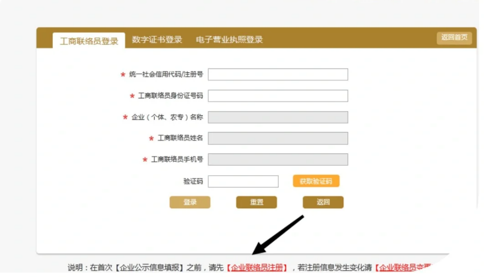 如果已经注册过工商联络员,则直接登录即可;没有注册过,需要先注册工商联络员。