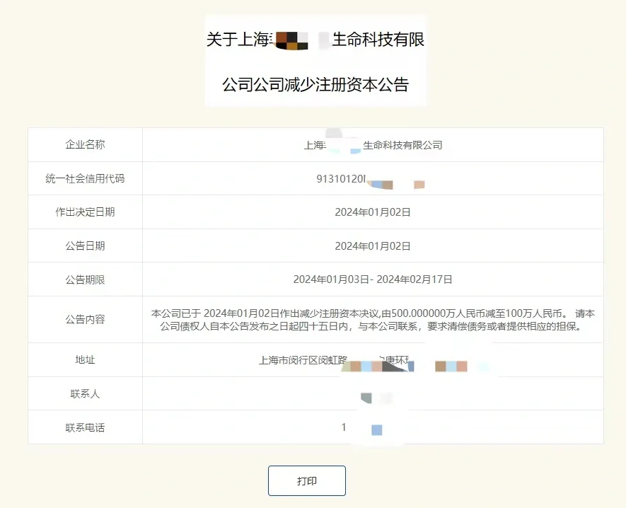 以上减资公告就发布完成了,接下来需要等待45天的公示期。在这期间,公司的债权人有权要求清偿债务或提供相应担保。45天公示期满无异议后方可进行下一步操作。