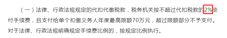 也就是说,如果企业代扣代缴个税100万元,就可以收到2万元的手续费返还。虽然法规对取得单位的财务制度、办税员有一定要求,但实务中多数代扣代缴个税的单位都是满足条件的!