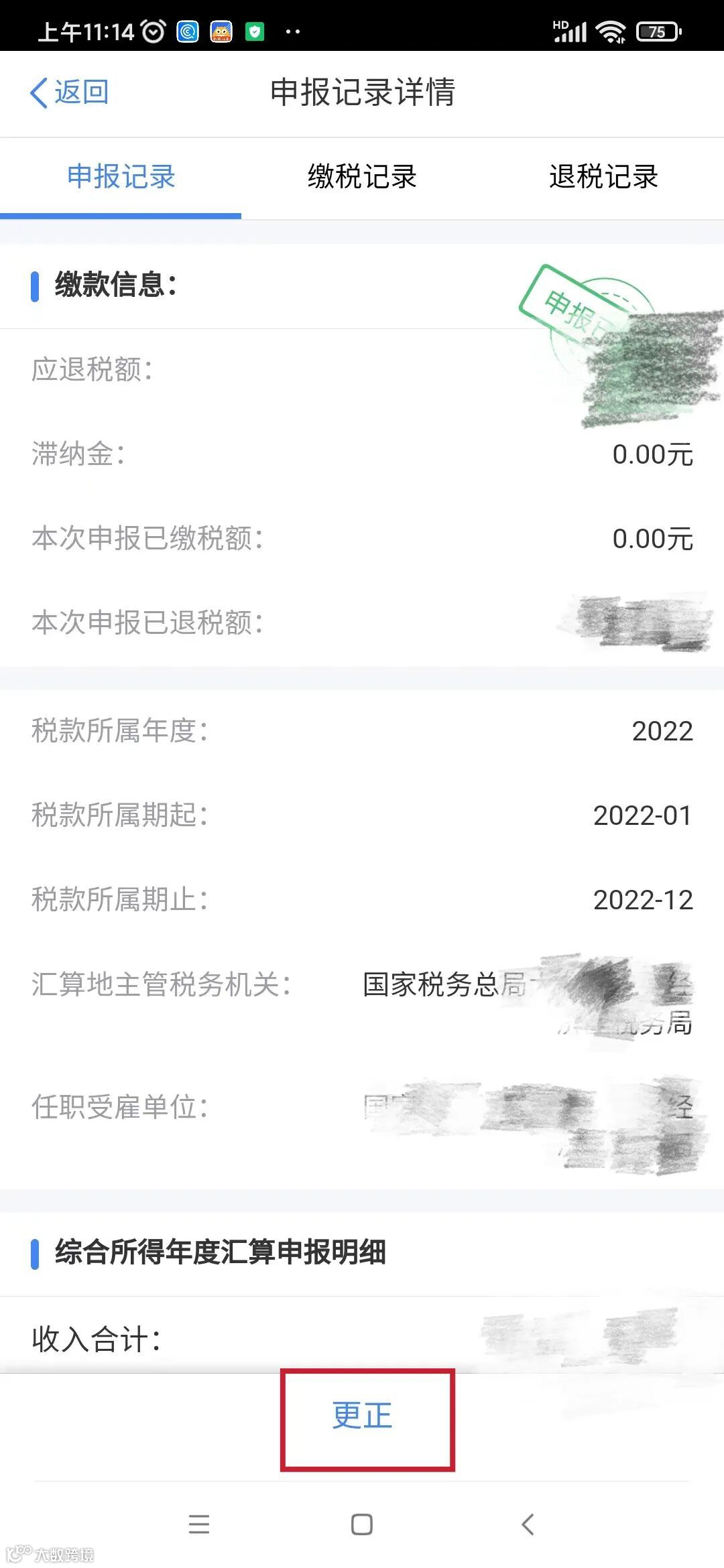 在“已完成”标签中点击对应年度汇算记录,按提示更正申报,涉及补缴税款的应同步补交税款及滞纳金。