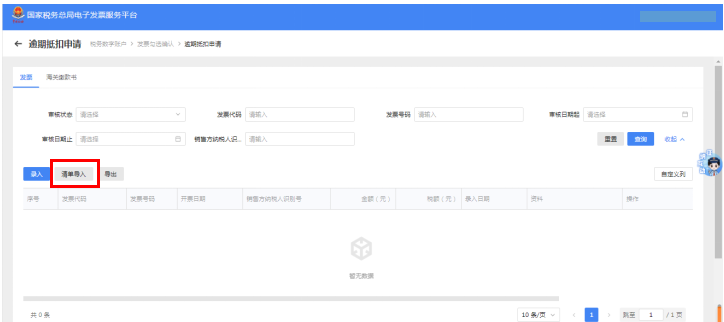 当发票数据量较多,逐份录入不适用时,可选择批量导入操作,这样可以提高录入效率、降低工作量。