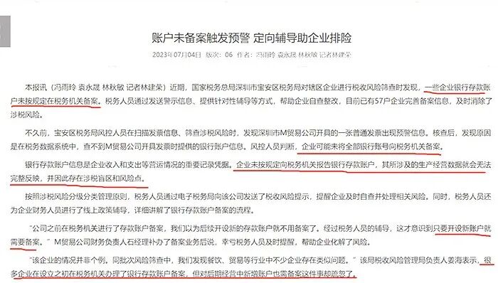 文章中,税务局提示大家要完成公司所有银行账户备案。提取了一些要点: