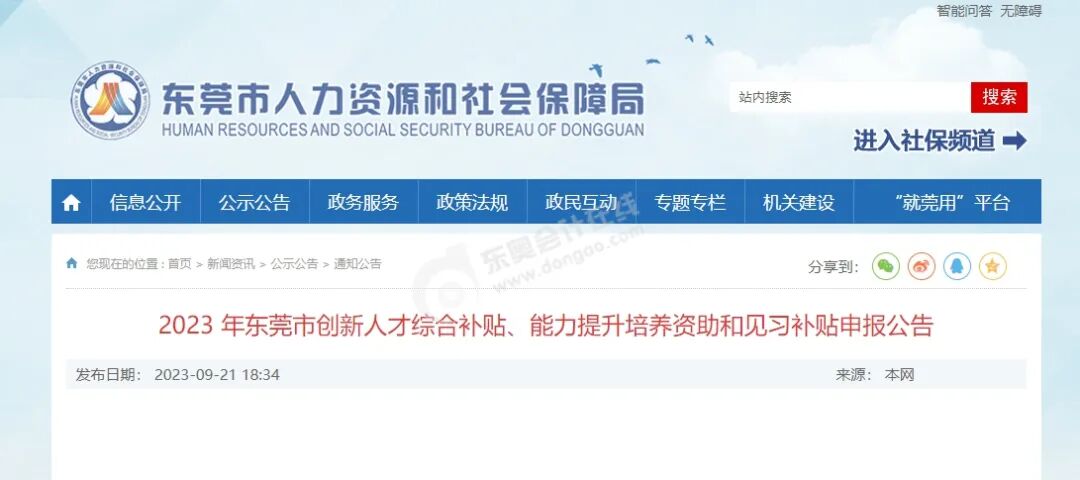 9月21日,东莞市发布《2023 年东莞市创新人才综合补贴、能力提升培养资助和见习补贴申报公告》,其中规定对拥有中级职称(或专业技术人员职业资格)最高补贴6万元。