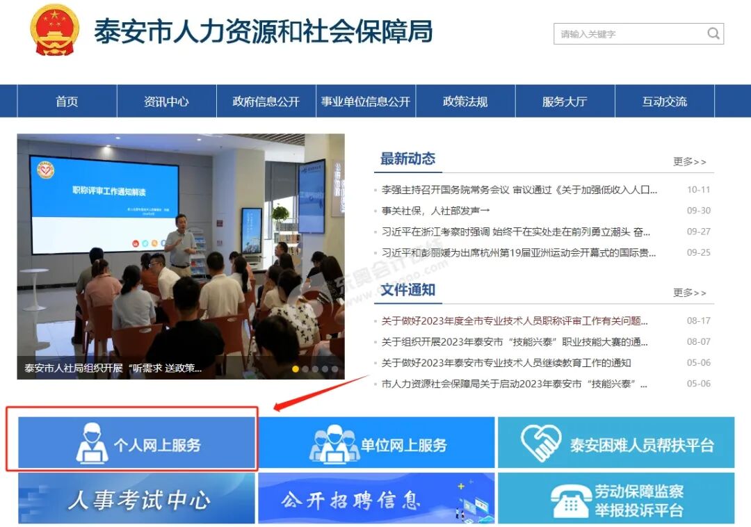 登录泰安市人力资源和社会保障局官网——个人网上服务;