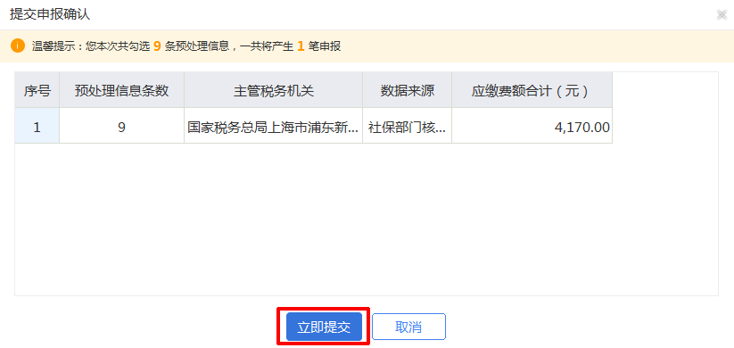 2.系统弹出“提交申报确认”,确认申报信息无误,点击【立即提交】。