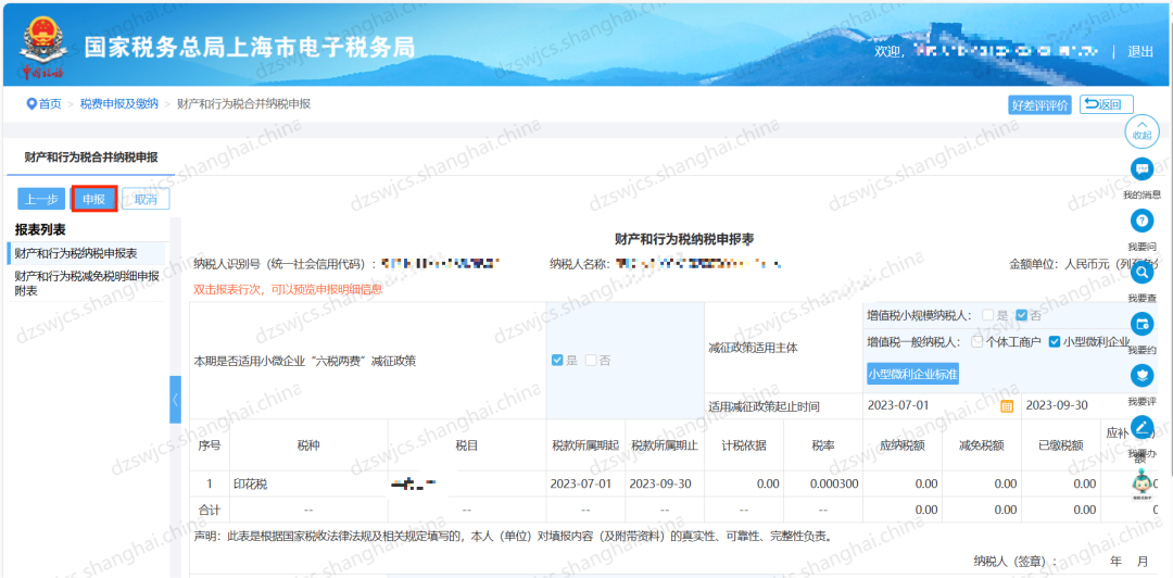 6.点击【申报】,完成印花税申报。