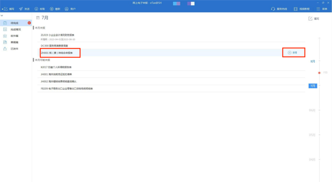 4.选择【一键零申报】,系统自动生成“零申报”的明细信息并直接跳转至申报页面。