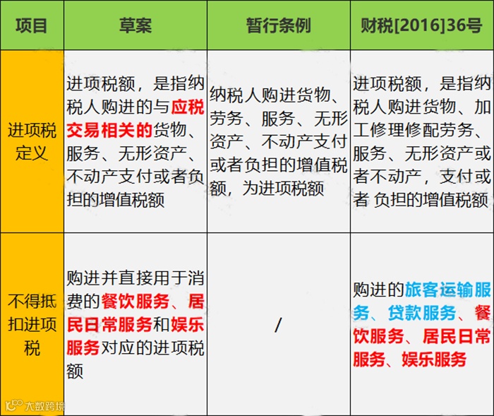 除上述2条外,其他“不得抵扣进项税”条款未发生实质变化。