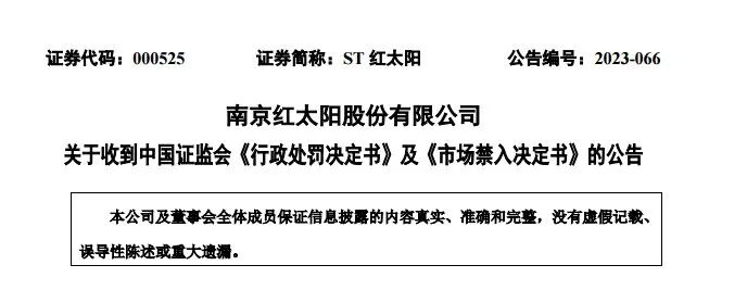因未按规定披露控股股东及其关联方非经营性占用资金的关联交易、2019 年报、2020 年半年报及《关于控股股东及其关联方归还上市公司非经营性占用资金的公告》中存在虚假记载,控股股东及其关联方未实质归还占用资金等事项,ST红太阳(000525.SZ)被证监会警告,并处以250 万元罚款;7名责任人被处罚,其中三任财务总监赵晓华、詹燚、赵勇,被警告,并分别罚款320万元、150万元、50万元,赵晓华被采取10年证券市场禁入措施。