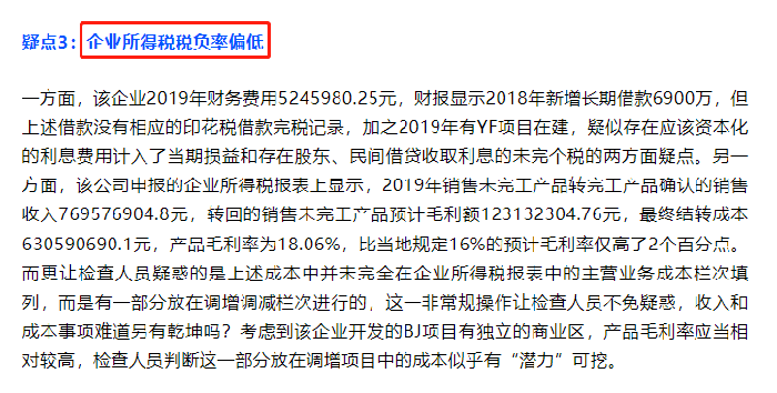 检查人员利用大数据分析该企业在增值税和企业所得税方面存在较为明显的涉税风险一共4个,其中第三个疑点是:企业所得税税负率偏低。