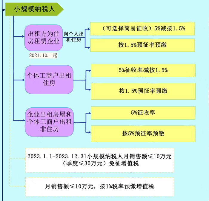4.住房租赁企业中的增值税一般纳税人向个人出租住房取得的全部出租收入,可以选择适用简易计税方法,按照5%的征收率减按1.5%计算缴纳增值税。