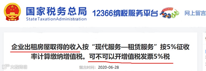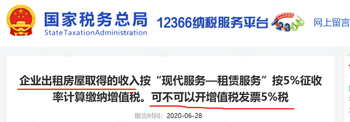 “企业出租房屋取得的收入按“现代服务—租赁服务”,按5%征收率计算缴纳增值税,可不可以开5%税率的增值税发票?”