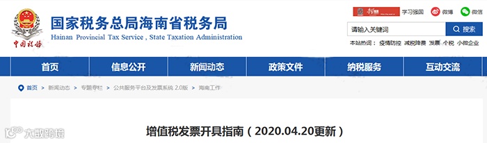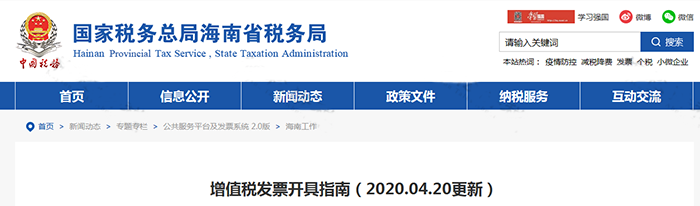 海南省税务局发布的增值税发票开具指南第二章第三项规定: