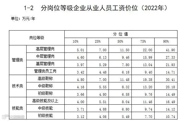 分岗位等级企业从业人员工资价位(2022年)。来自人社部网站