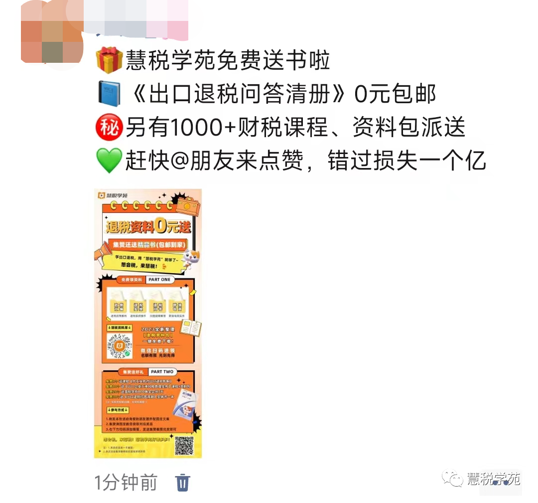 1️⃣满8个送《外汇业务对出口退税影响》课程1个月免费观看权限