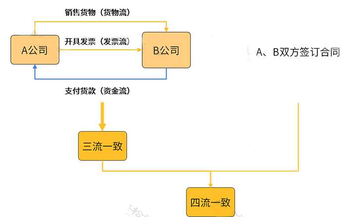 简单来说,“三流一致”指的是发票流、资金流和货物流的统一,如图所示: