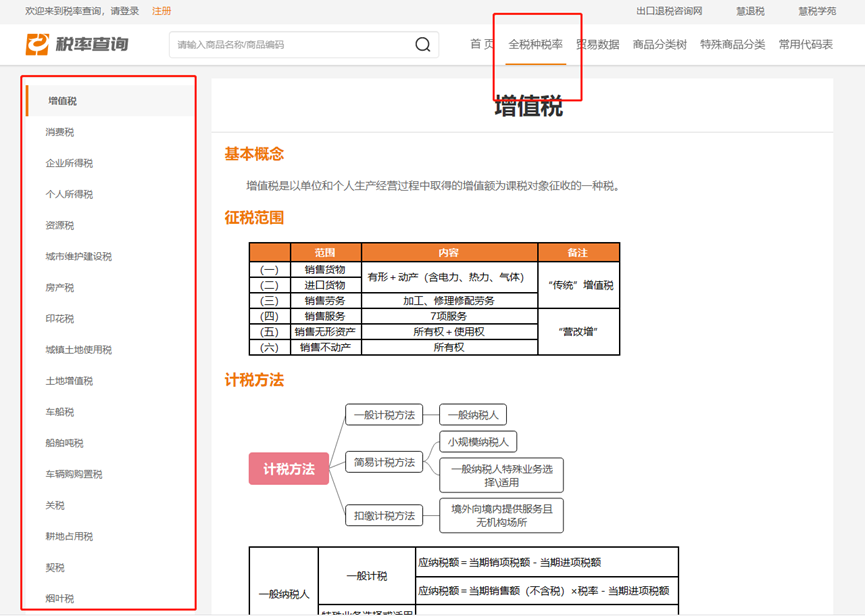 5.如有需要还可以进行各个税种的税率查询