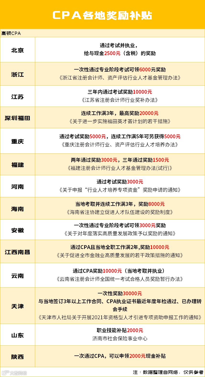 全国各地CPA福利汇总