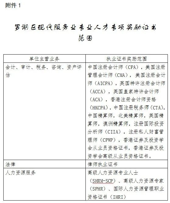附件:1.罗湖区现代服务业专业人才专项奖励证书范围