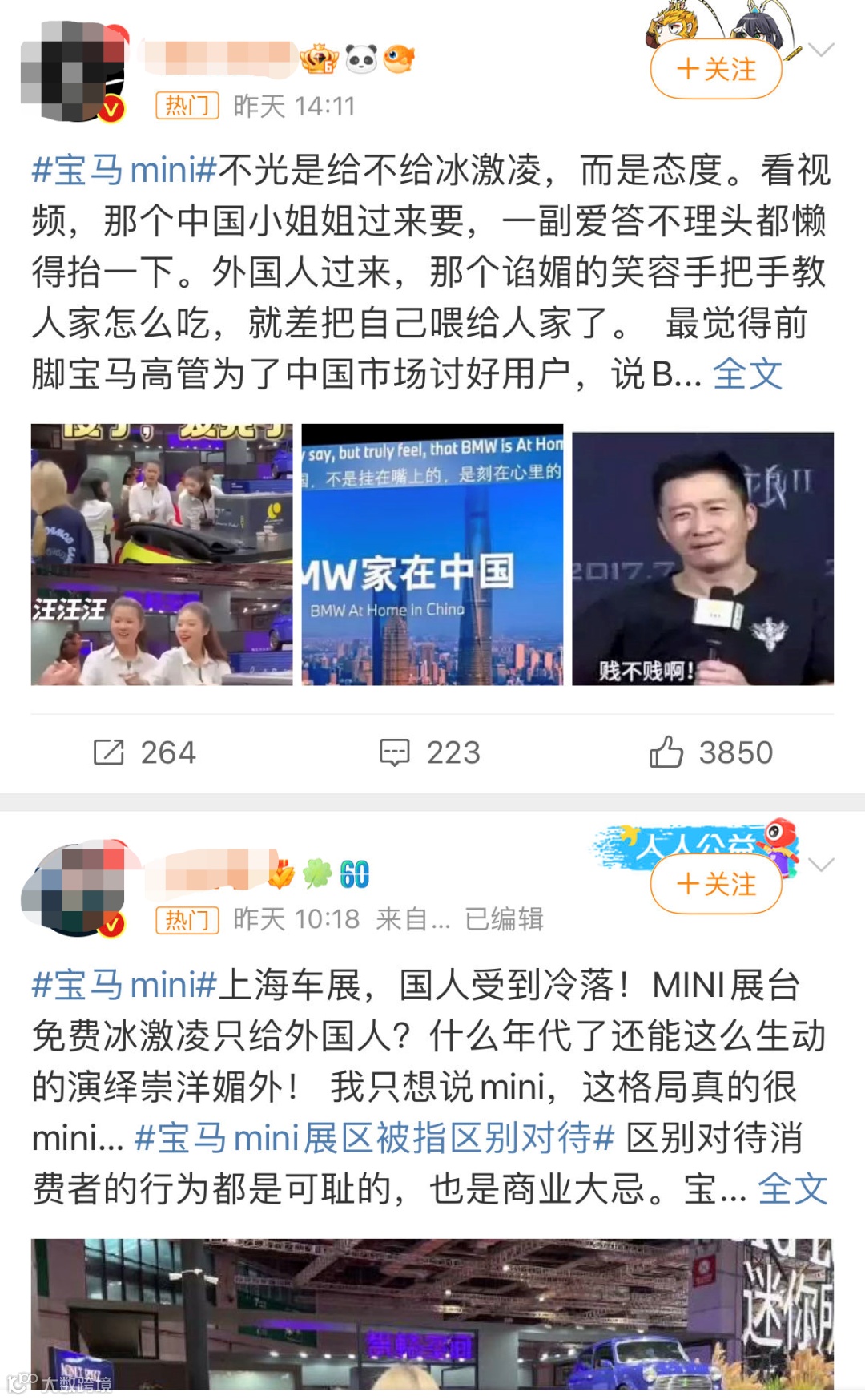 此次宝马MINI的活动和公关真的让人很下头,某大V声称:中国一年可给宝马贡献3000多亿的营收,但大家却拿不到一个“冰淇淋”