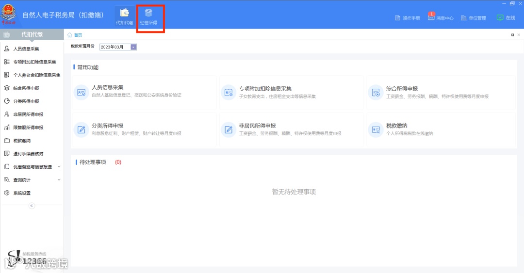 第一步:登录自然人电子税务局(扣缴端),点击页面左上【经营所得】图标