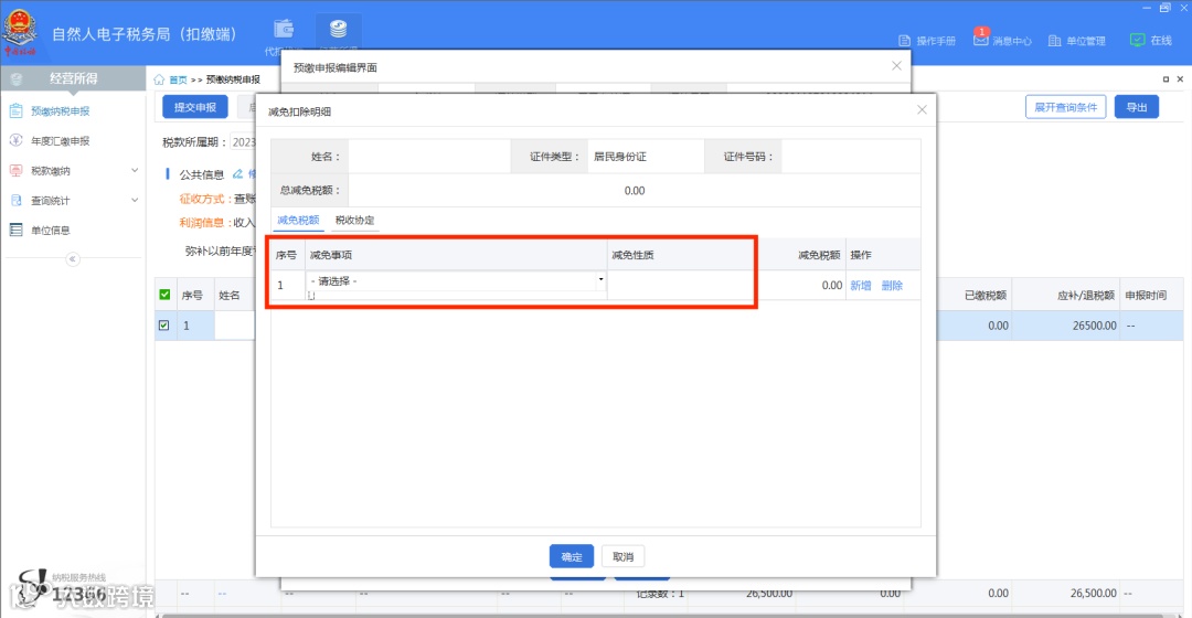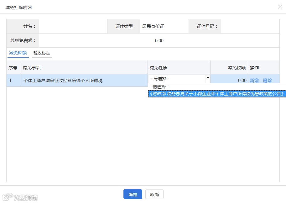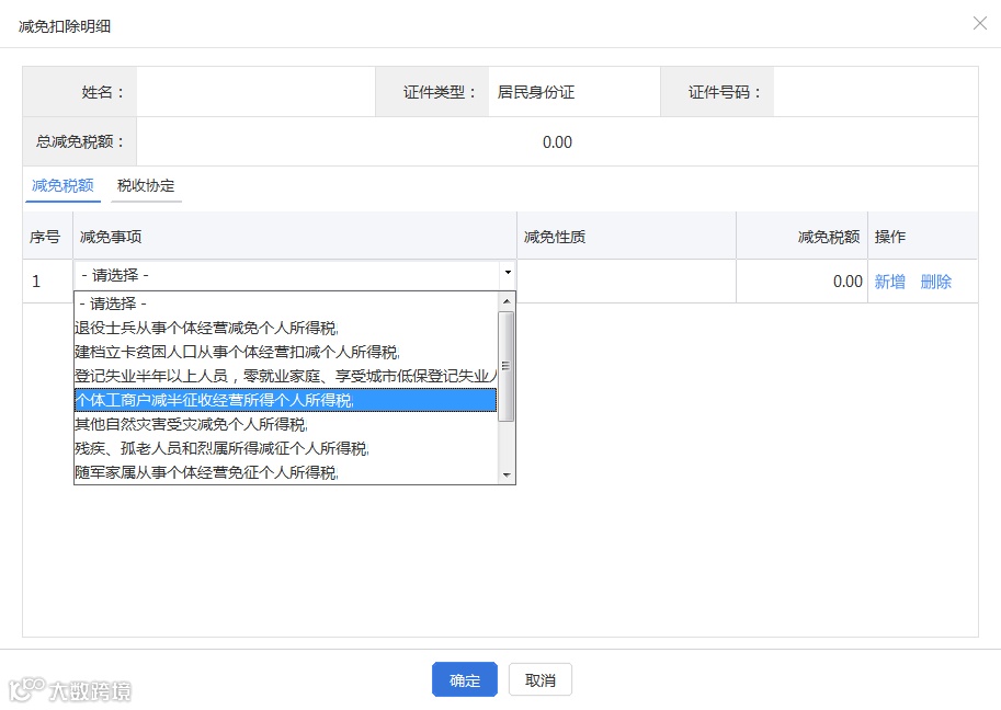 减免事项选择“个体工商户减半征收经营所得个人所得税”