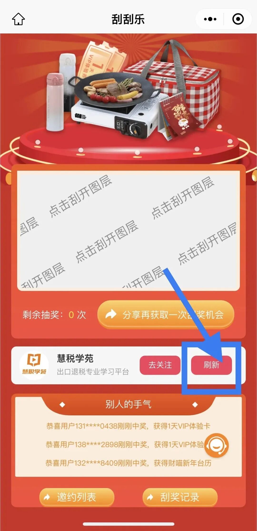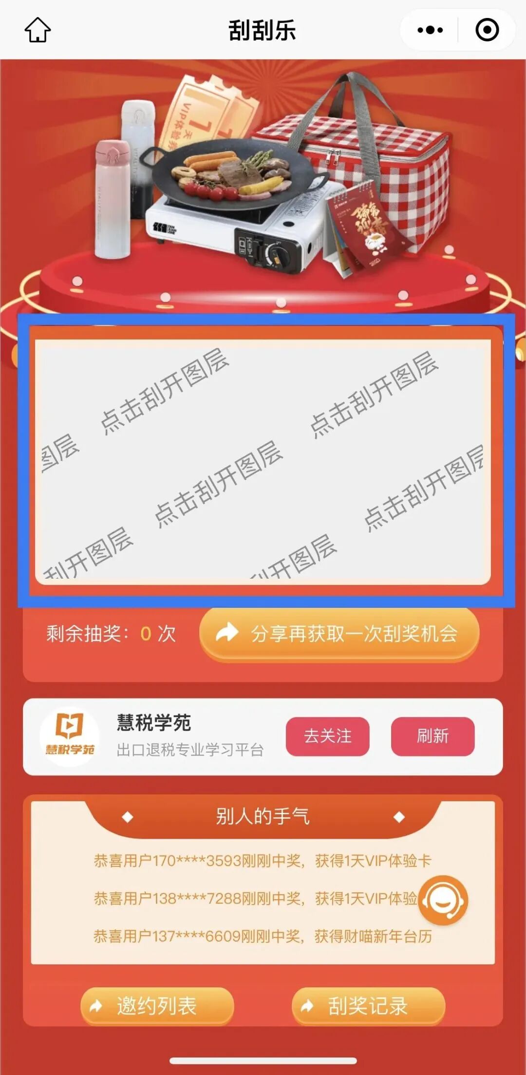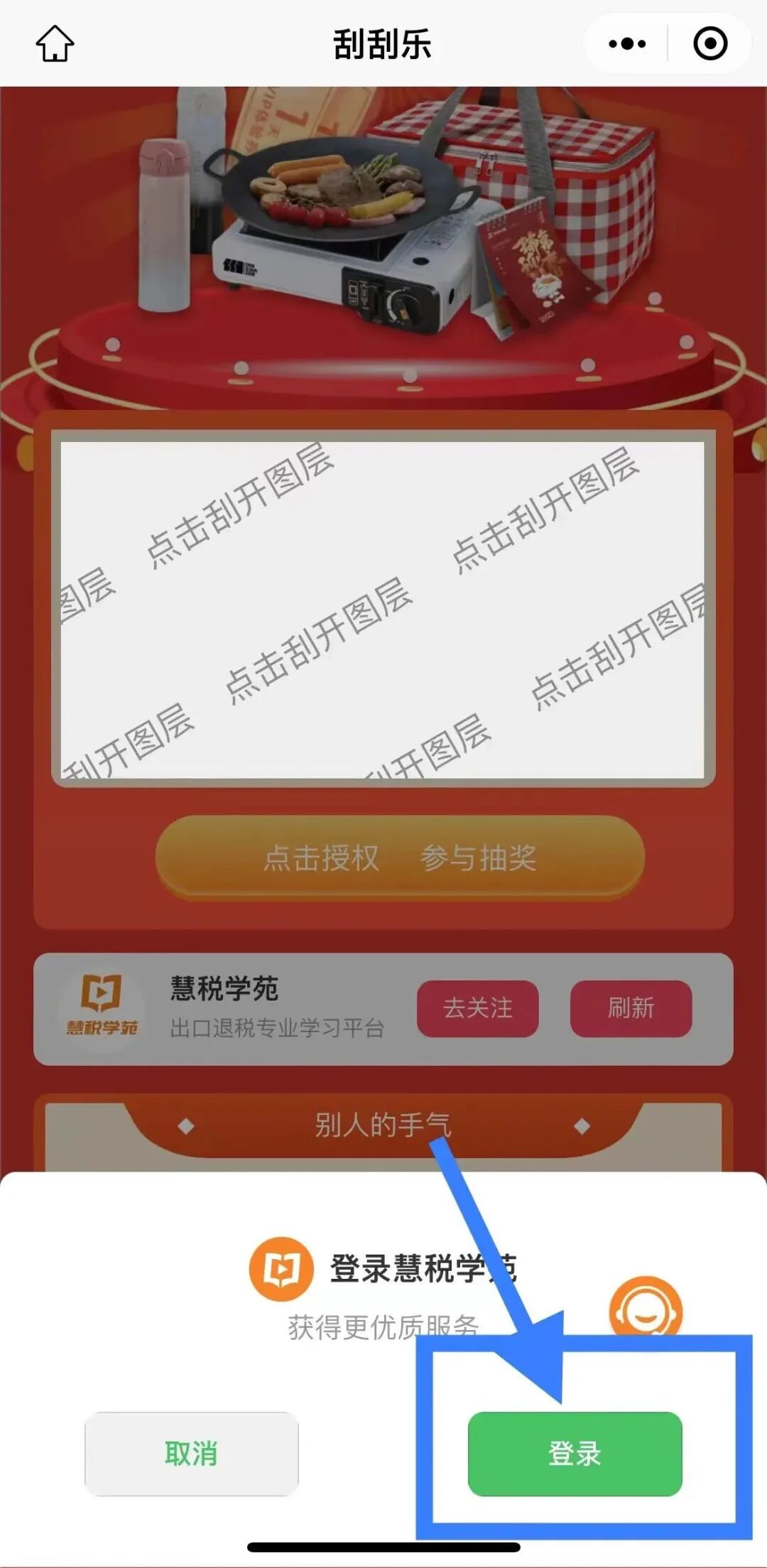 03 登录后点击刮奖图层,关注慧税学苑公众号可增加抽奖机会