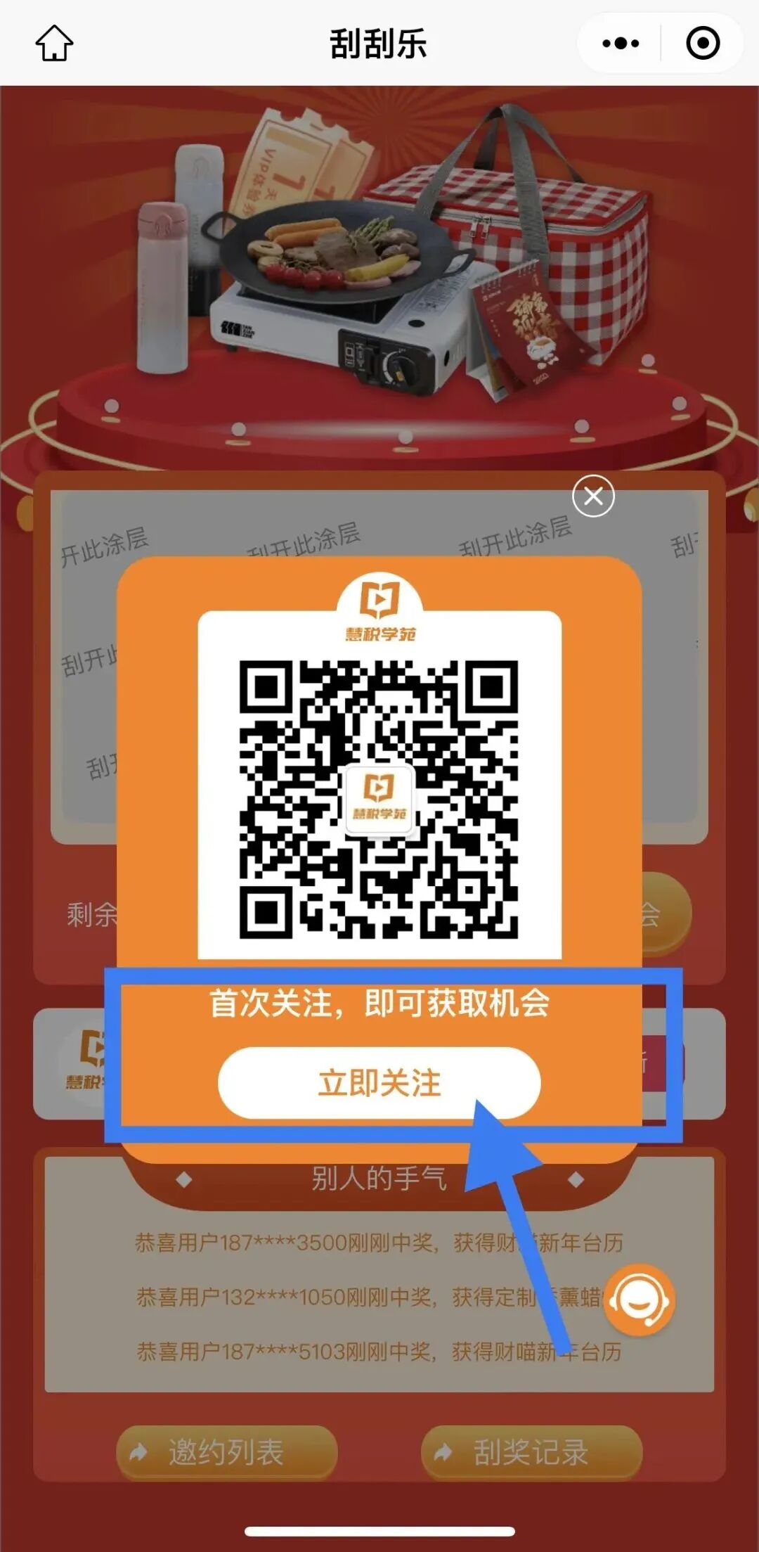 04 关注完成获取一次刮奖机会,邀请好友助力还可获得更多机会