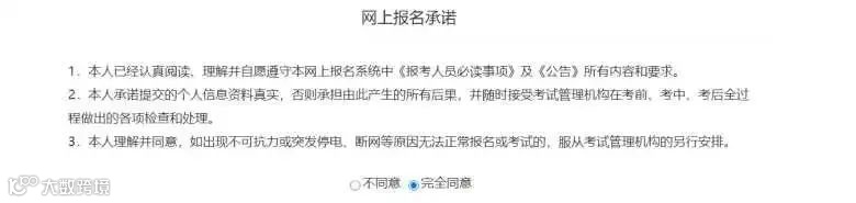 报名:首先查看报考人员必读事项。点击上图中"报名"按钮填写报名信息,进行报名。阅读网上报名承诺以及中华人民共和国刑法条例,选择完全同意和我已阅知上述条款,然后点击"下一步"。
