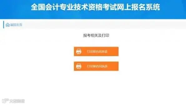 报考相关及打印:点击"报考相关及打印"进入可打印报名信息表和报名回执表,如下图所示。