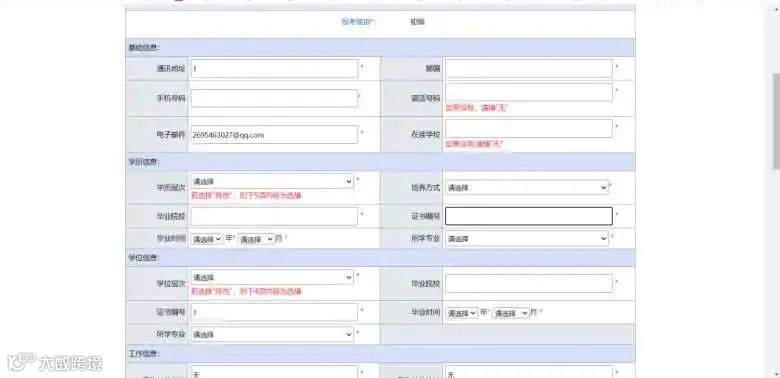 选择报考级别后点击"下一步"填写报考信息。如下图所示。