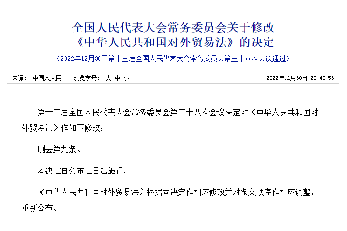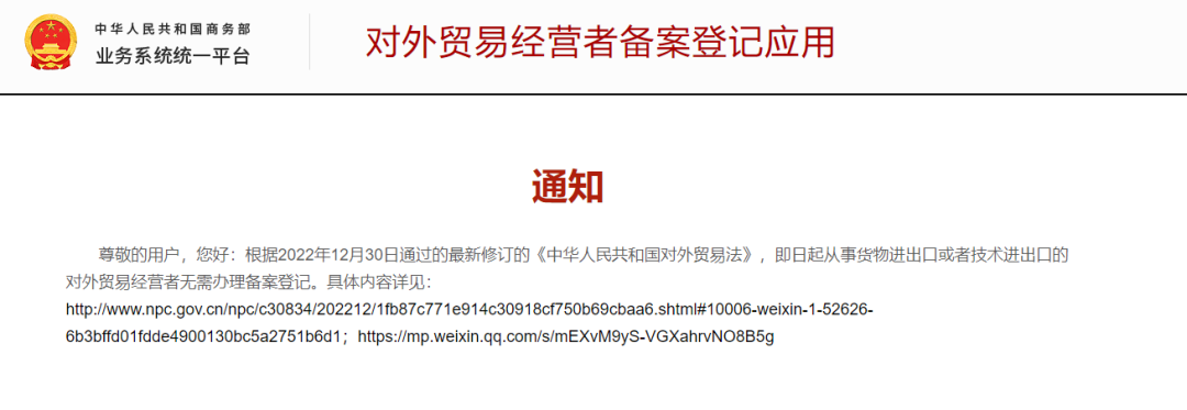 2023年起:对外贸易经营者无需办理备案登记