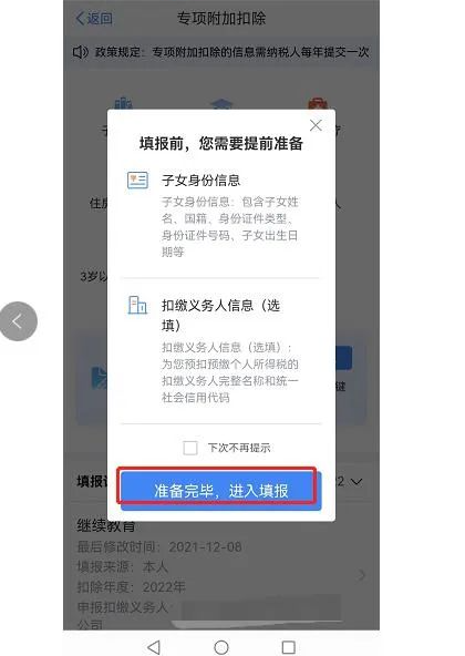 根据国税总局在2022年初修订发布的《国家税务总局关于修订发布<个人所得税专项附加扣除操作办法(试行)>公告》:每年12月对次年享受专项附加扣除的内容进行确认。