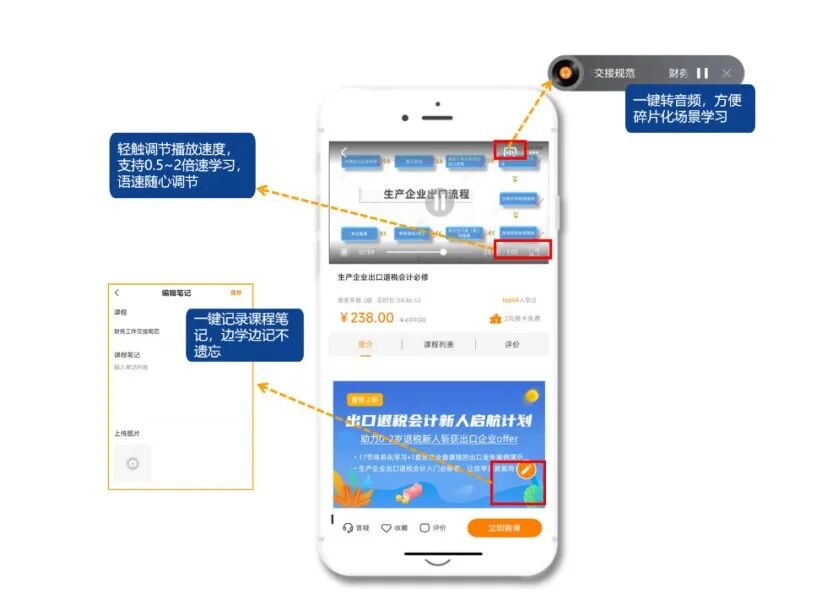 随时随地听课,系统简单易操作。课程采用AI语音形式,APP结合小程序的应用场景,每节课不超过15分钟,满足用户随时随地听课的需求。