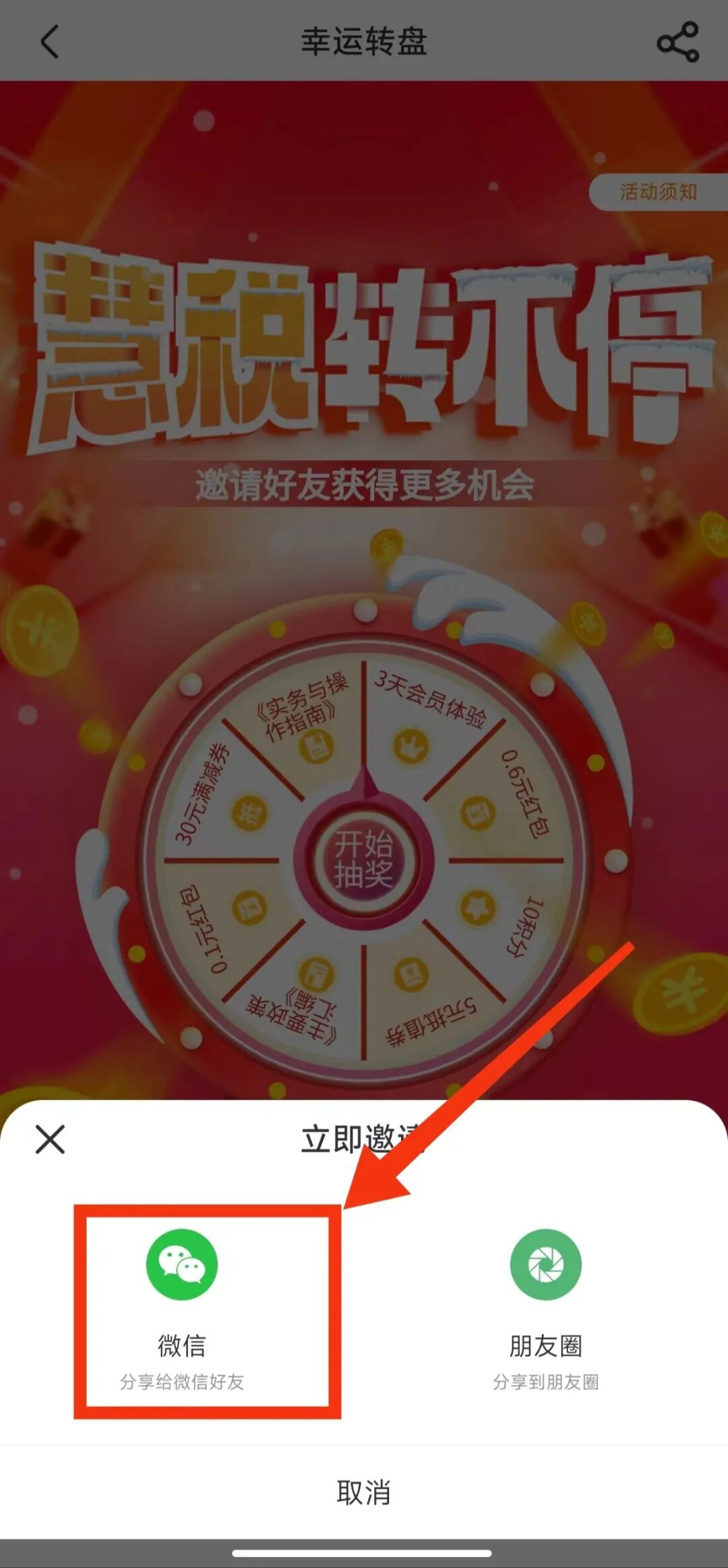第三步:新朋友自动获得一次抽奖机会,还可以邀请好友,获取更多机会!