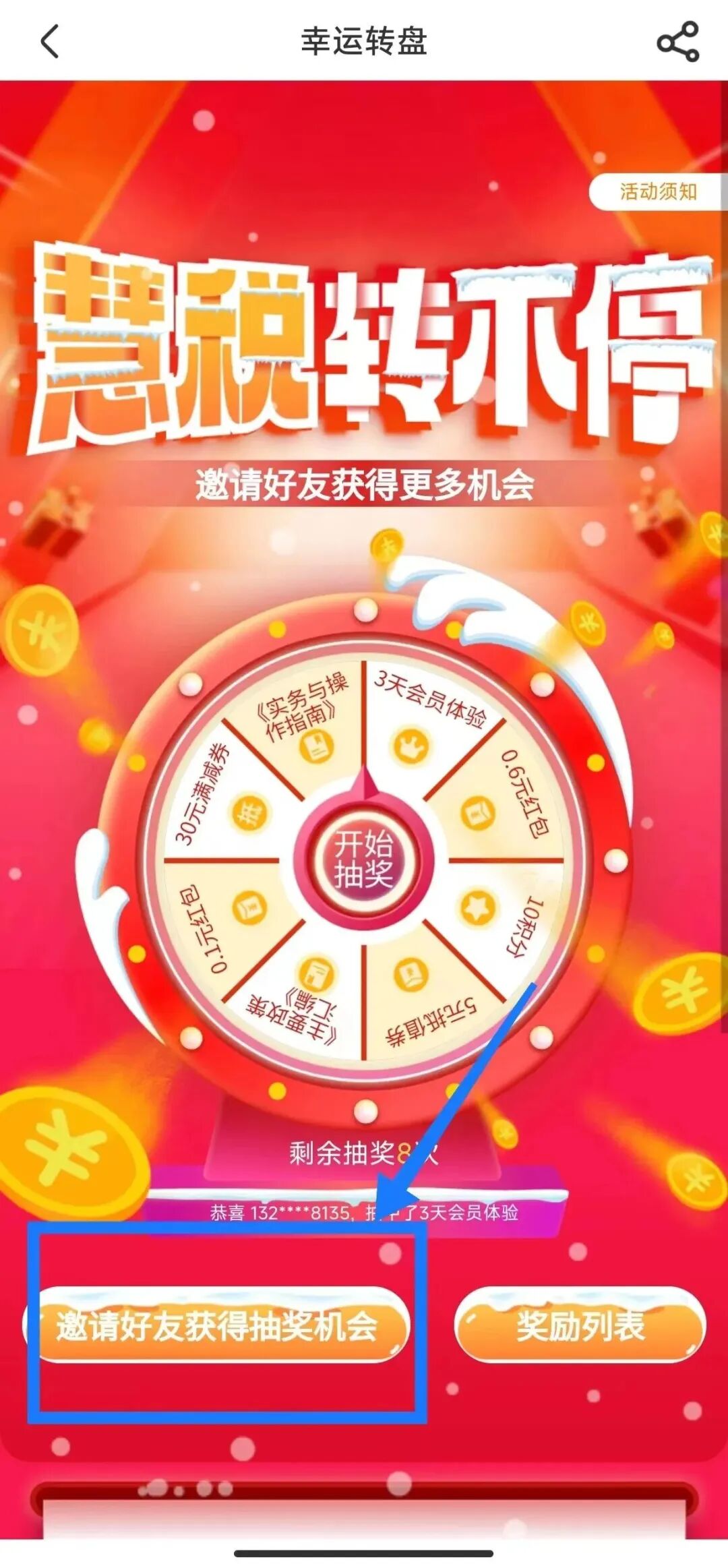 慧税转不停!100%中奖的转盘又来啦!小伙伴可以参与活动抽取会员体验卡,《金税四期下发票税务风险防范》在内的1000+慧税财课都可免费听!赶紧来试试手气吧~