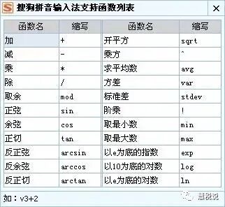 1.输入“v”选择函数,就可以看到搜狗键盘支持的函数