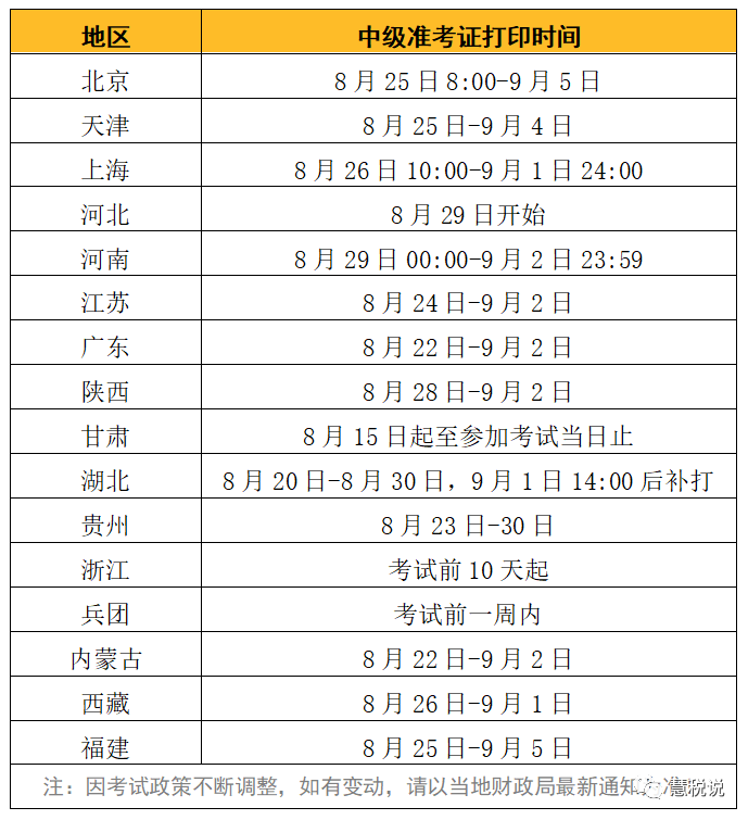 财喵统计了各省市中级考试的准考证打印时间,还没准备好的小伙伴快来看看吧!