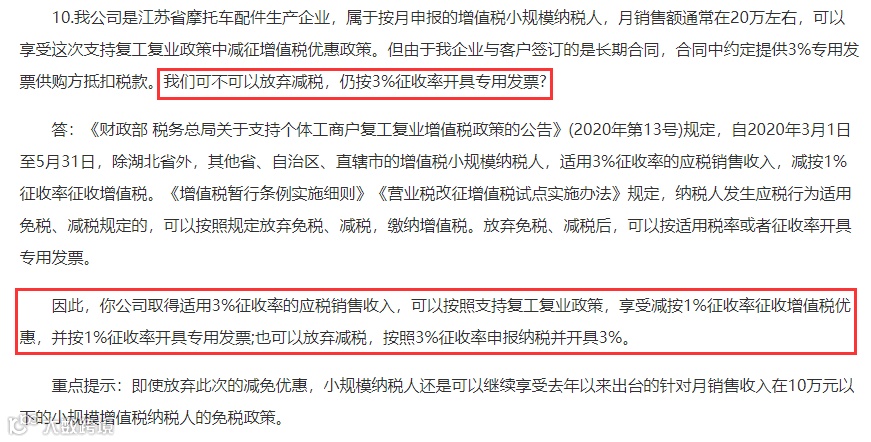 小规模纳税人可以放弃免税,开具3%的专票。那开具3%专票如何缴税呢?其实这个很早之前就给出过明确回复。