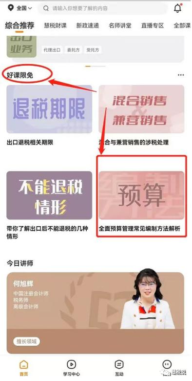 更多限免课程,点击公众号【慧税说】菜单——【好课限免】查看哦!