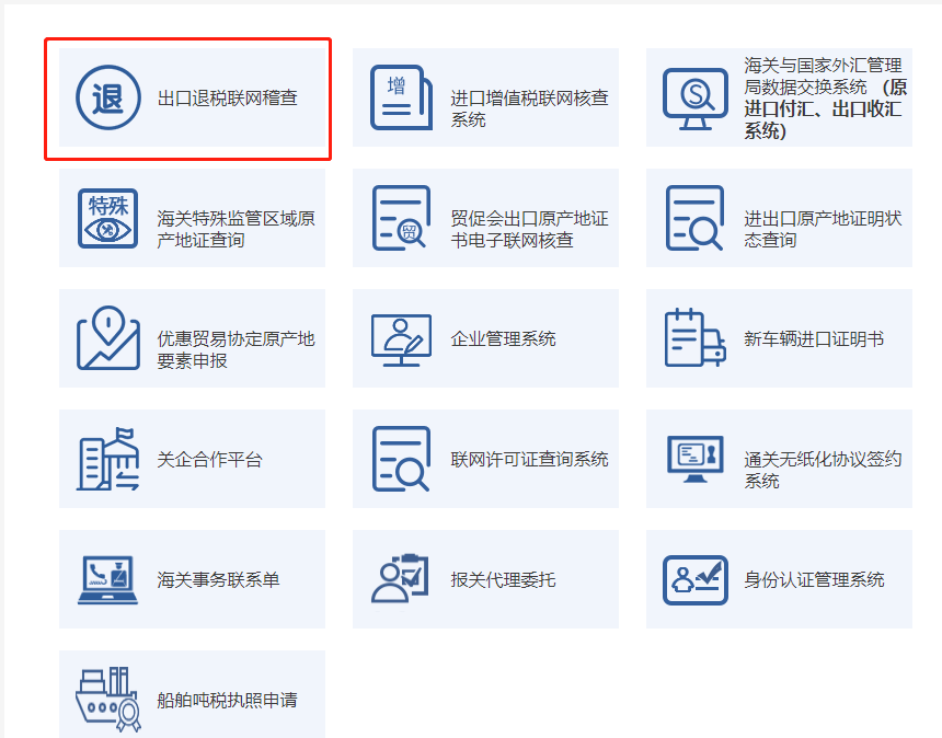 搜索网址e.chinaport.gov.cn/,进入后,点击“出口退税联网稽查”。