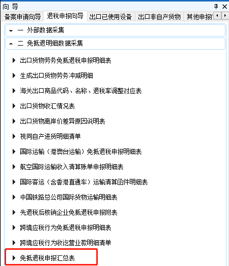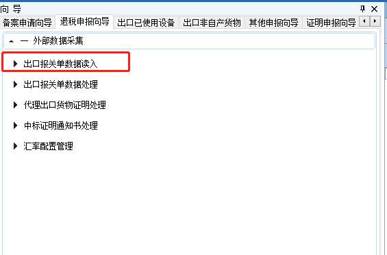 点击“退税申报向导”——“外部数据采集”——“出口报关单数据处理”,查看已读入的报关单明细数据。