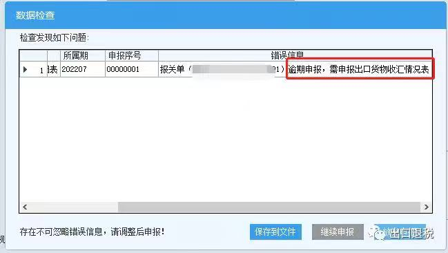 在申报软件录入完出口货物申报数据后,系统提示逾期申报,要申报出口货物收汇情况表,而且属于不可忽略的错误信息,这是为什么呢?