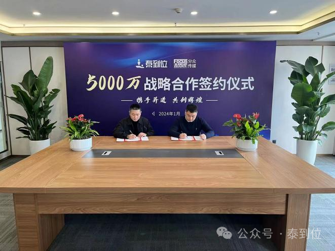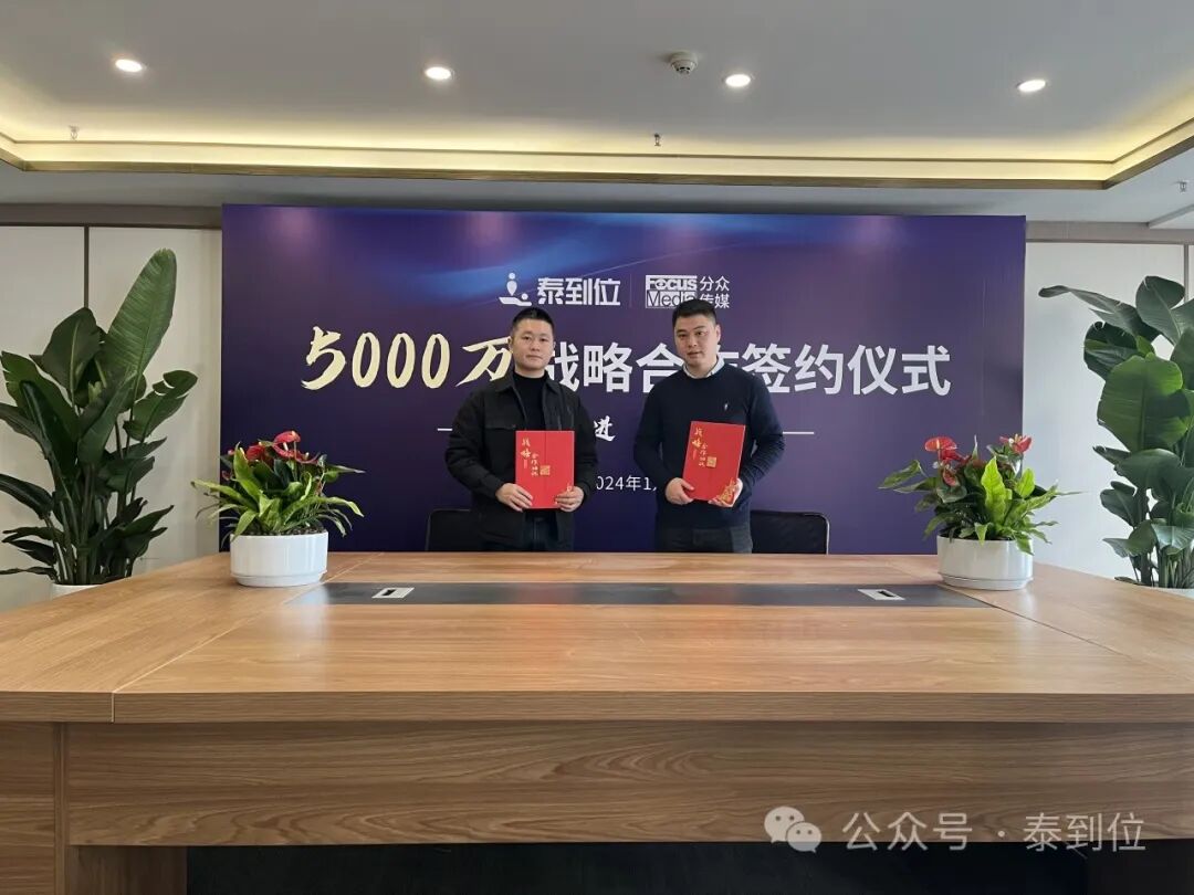 新年伊始,“泰到位”的2024征程再添助力。1月9日,四川跃晟网络科技有限公司(“泰到位”)与分众传媒正式签约五千万级战略合作。签约仪式在“泰到位”成都总部举行。
