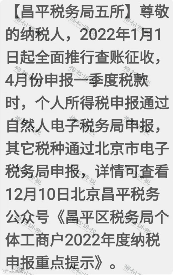 据悉,北京市多家企业收到税务局通知,通知称2022年1月1日起全面推行查账征收,4月份申报一季度税款时,个人所得税申报通过自然人电子税务局申报,其他税种通过北京市电子税务申报。