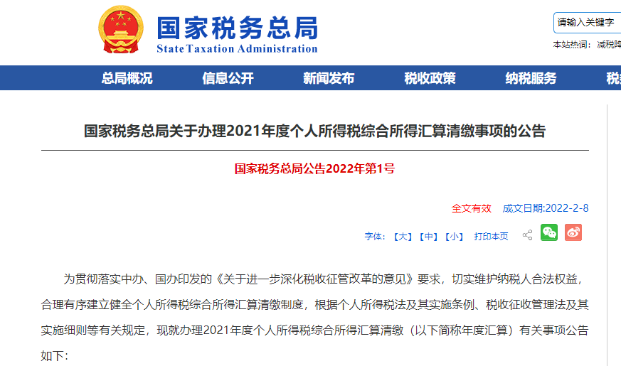 刚刚!税总发布重磅公告,2021年度个税汇算时间为2022年3月1日至6月30日。大家通过手机APP就能完成退税或补税!
