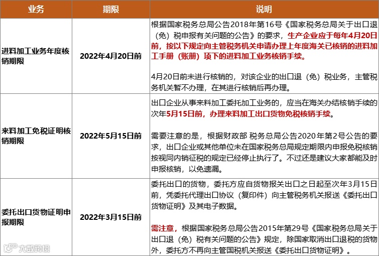 最后,还有几个跟出口退税相关的申报期限需要注意: