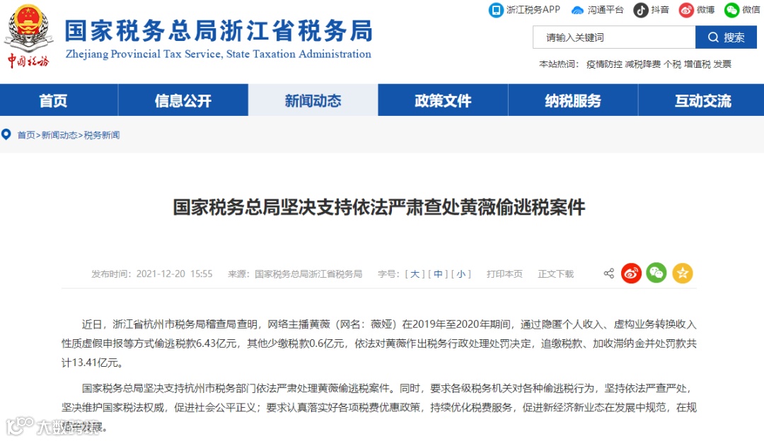 2021年11月23日杭州市税务局刚通报了主播雪梨,12月20日就通报了薇娅……多起偷逃税案件曝光之后,多地税务部门喊话明星艺人、网络主播在年底前自查补税,这样可以从轻或免罚,否则将重罚。