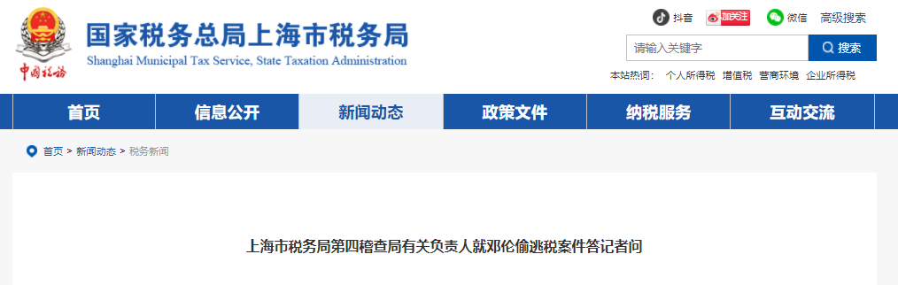 日前,上海市税务局第四稽查局对邓伦涉嫌偷逃税问题进行了查处。该局有关负责人就案件查处情况回答了记者提问。
