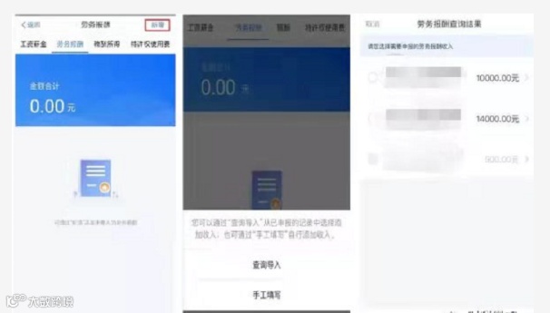 没有自动归集的劳务报酬、稿酬、特许权使用费,申报个税时,要手动新增填入: